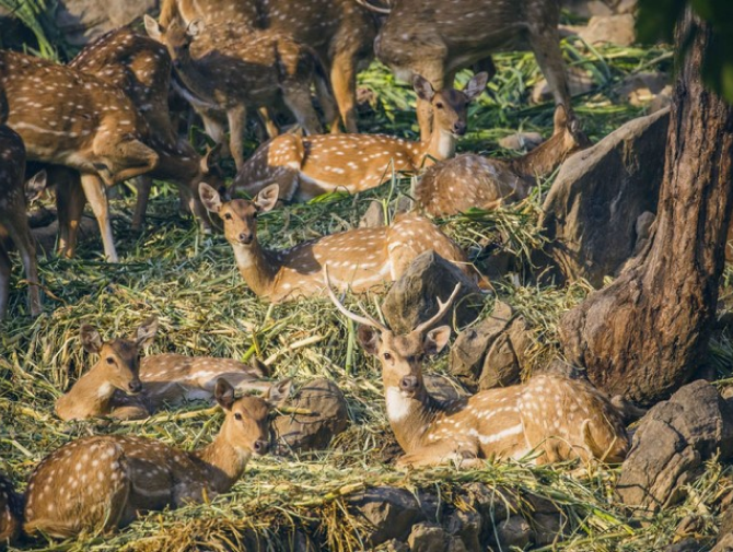 On the way to Khanvel, Satmalia has a wildlife sanctuary with many species of antelope. Many other animals – including sambhar and ch...
